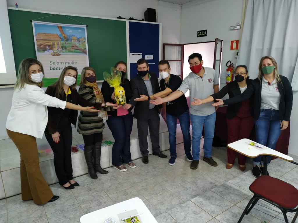 A formação foi realizada durante o 2º dia do Encontro Pedagógico RB 2021 e foi conduzida pelas assessoras pedagógicas: Patrícia Roesler Simonetti e Andréia Eggers. O gerente de Agência do Sicredi Moacir Dupont participou da abertura e fez a entrega simbólica de uma “pelúcia em formato de abelha”, que é um dos símbolos do Programa.