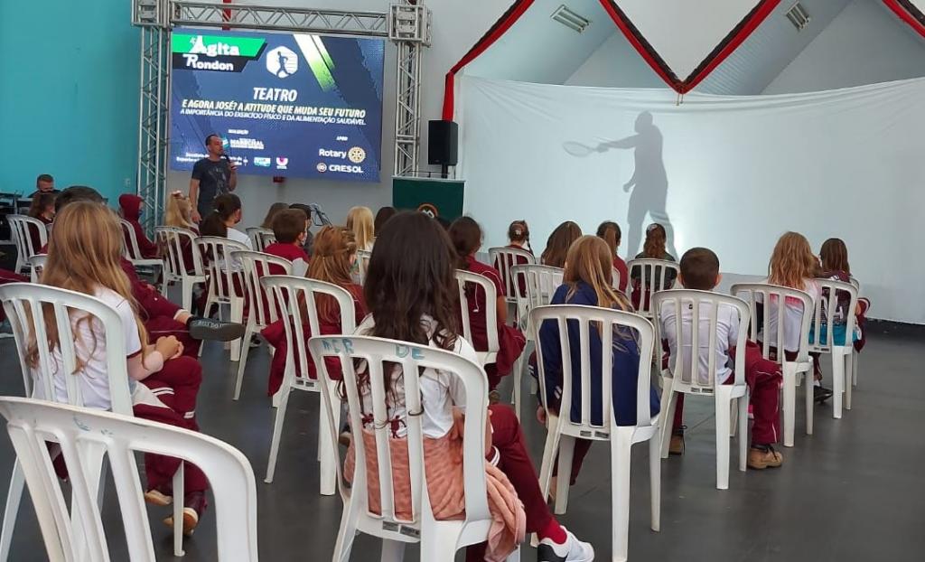 Os estudantes do 4º e 5º Ano, do Colégio Luterano Rui Barbosa, participaram da programação do 4º Agita Rondon assistindo uma apresentação teatral, no dia 10 de setembro, nas dependências do Café Colonial. Com o título “E Agora José? A Atitude Que Muda Seu Futuro”, a peça teatral buscou enaltecer a importância das atividades físicas e de uma alimentação saudável.