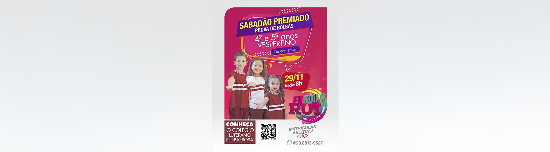 O Colégio Luterano Rui Barbosa é uma instituição educacional que trabalha há 70 anos com excelência no ensino, com princípios éticos e cristãos.