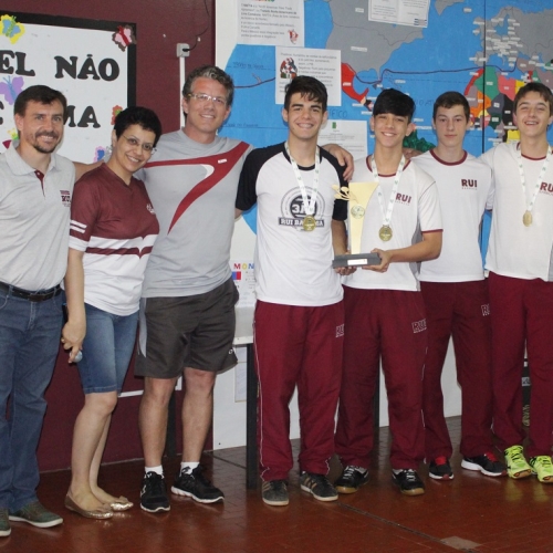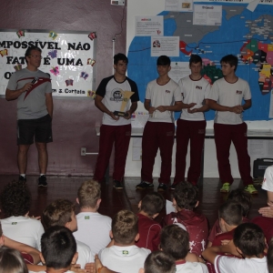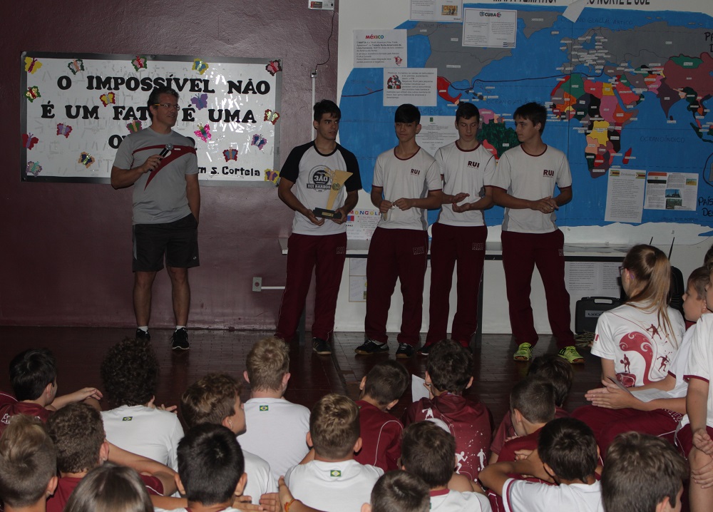 Na manhã desta quarta-feira, dia 16 de novembro, os alunos que participaram do campeonato, Felipe Tavares, João Saito, Clovis Kawacki, Jair Grunewald e Pedro Fernandes dos Santos foram homenageados durante o Ato Cívico. O professor de Educação Física, Gleison Pacheco enalteceu a conquistas dos alunos.