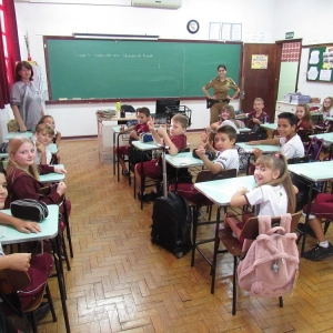 Os alunos do 5º Ano do Colégio Luterano Rui Barbosa estão participando das aulas do Programa Educacional de Resistência às Drogas e à Violência (Proerd), que é desenvolvido pela Patrulha Escolar, em parceria com a prefeitura de Marechal Cândido Rondon, por meio da Secretaria de Educação. As aulas tiveram início no mês de março e seguem até o mês de junho.