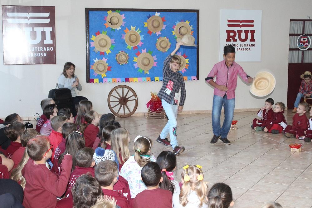 Simpatia, graça e ótima desenvoltura. Essas foram algumas das qualidades que os candidatos a Sinhozinhos e Sinhazinhas, do Colégio Luterano Rui Barbosa, apresentaram durante o desfile, realizado no dia 30 de maio. Foram eleitos dois casais, um representando os alunos do turno matutino e o outro do vespertino. Os eleitos foram: Gabriele Rohde, do 4º Ano “A” e Djonatan Michel Mota, do 5º Ano “A”. E Clara Hupes Emmel, do 4º Ano “B” e Felipe Gabriel Vacari, do 5º Ano “B”.