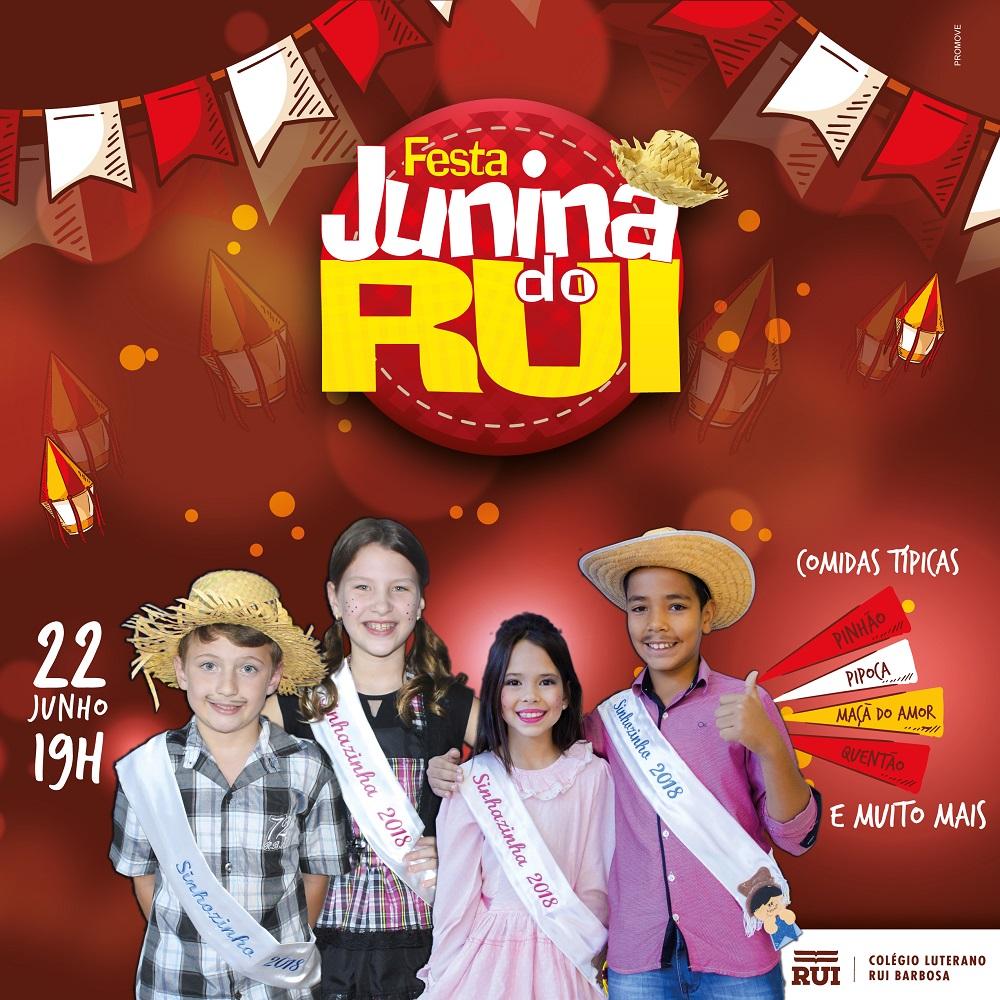 O Colégio Luterano Rui Barbosa realiza nesta sexta-feira, dia 22 de junho, a tradicional Festa Junina. O arraiá irá contar com diversos quitutes juninos como maçã do amor, pé-de-moleque, espetinho, cachorro-quente, pinhão, entre outros. Além das brincadeiras de pescaria, árvore surpresa e o basquetinho do arraiá.