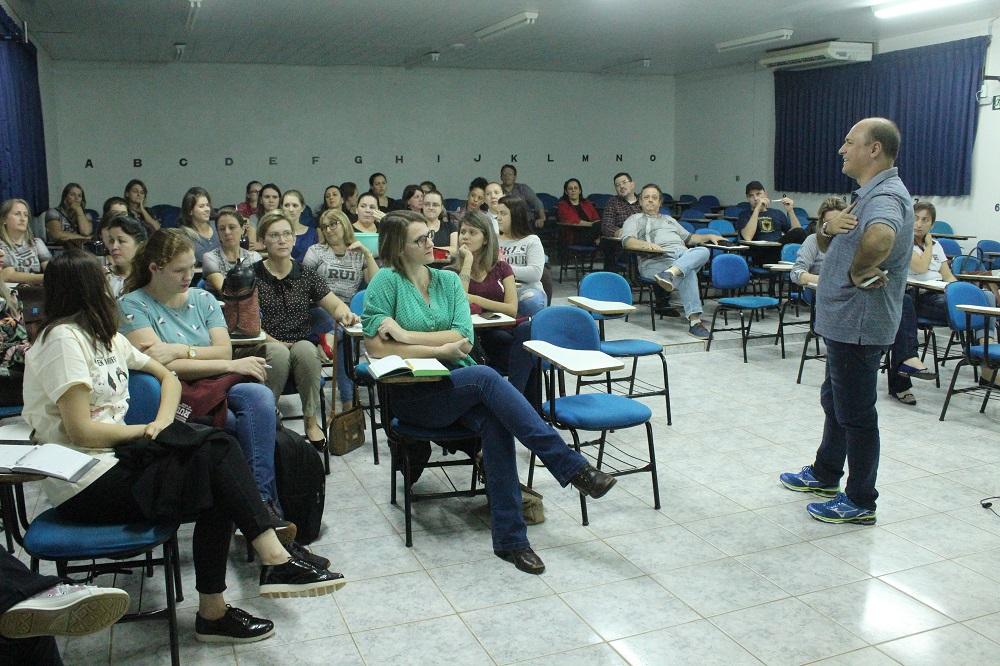 Com o objetivo de qualificar os professores para atuarem junto de alunos com Transtorno do Espectro Autista (TEA), cerca de 50 professores e colaboradores, do Colégio Luterano Rui Barbosa, participaram, nos dias 29 e 30 de abril, de um curso sobre autismo, ministrado pelo professor Doutor em Educação Especial, Douglas Borella, da Unioeste. Foram dois dias de capacitação em que o docente trouxe informações sobre o funcionamento do cérebro autista, diagnóstico e práticas pedagógicas.
