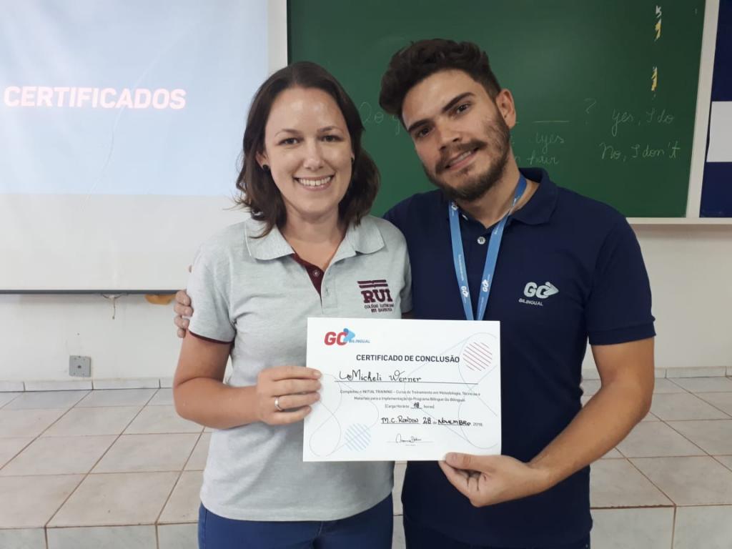 As professoras de Língua Inglesa Marcelli Talita Oswald e Micheli Werner, que vão trabalhar o Programa GO Bilingual (um programa, integrado à grade curricular, que inova o ensino de inglês), no Colégio Luterano Rui Barbosa, participaram nos dias 26 a 28 de novembro, de uma formação presencial intensa. Foram aproximadamente 20 horas de curso, ministrado pelo coordenador pedagógico da GO Bilingual, Rafael Pinheiro Miranda, que veio do Rio de Janeiro, para fornecer ferramentas didáticas para a implantação do Programa Bilíngue no Rui Barbosa.