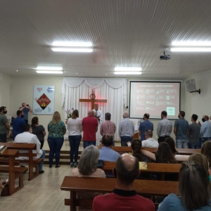 O culto foi conduzido pelos pastores: Claudio Renato Bundchen, Cleudimar Robeson Wulff, Sandro Edgar Kruger e Mario Alberto Melo de Melo. Utilizando como referências as leituras da semana, os pastores discorreram sobre a mensagem do evangelho e enalteceram a importância de que os cristãos estejam sempre ligados a Cristo, para que então possam ser reconhecidos pelo fruto do amor e produzir bons frutos.