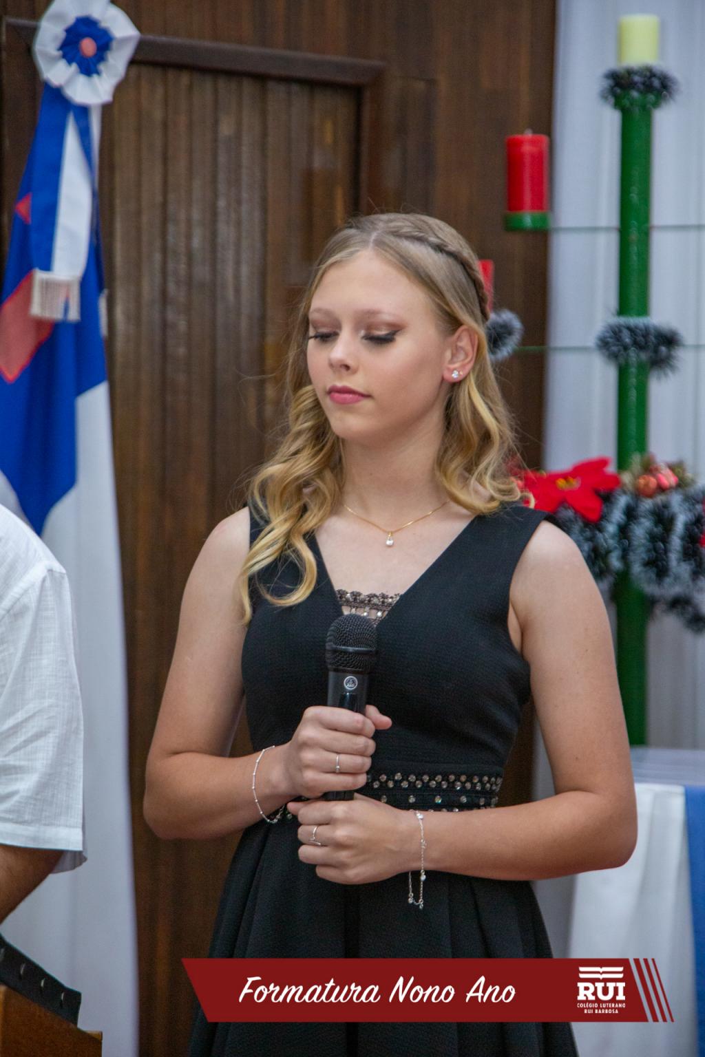 O momento devocional foi conduzido pelo professor de Ensino Religioso, pastor Mario Alberto Melo de Melo. A oratória dos alunos foi proferida por Clara Regina Ruckhaber Modes e Enzo Sartor. A professora Marcele Talita Oswald Ceruti fez a mensagem em nome de todos os professores da turma.