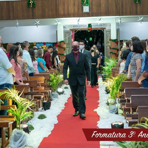 O Colégio Luterano Rui Barbosa realizou no dia 10 de dezembro a formatura dos alunos da 3ª Série do Ensino Médio 2021. A solenidade foi realizada na Congregação Luterana Cristo e foi prestigiada pelo diretor do educandário, pastor Cleudimar Robeson Wulff; coordenador geral, Luis Ricardo Ebuchi; coordenadora pedagógica, Patrícia Quinot Gundt; secretário de educação do município de Marechal Cândido Rondon, Fernando Volpato; professores, familiares e colaboradores.