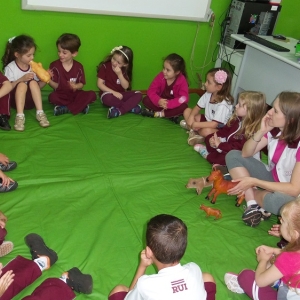 O tema foi estudado de diversas formas, conforme o conteúdo programático para cada turma que é previsto na apostila. Por intermédio de conversas, pinturas, musicalização e outras atividades, cada professor trabalhou com os alunos as diferenças dos animais, bem como o hábitat e a alimentação de cada espécie.