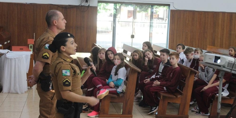 Os estudantes do Ensino Fundamental 2 e Médio, do Colégio Luterano Rui Barbosa participaram na manhã desta terça-feira (21.06) de uma palestra com os representantes da Polícia Militar.