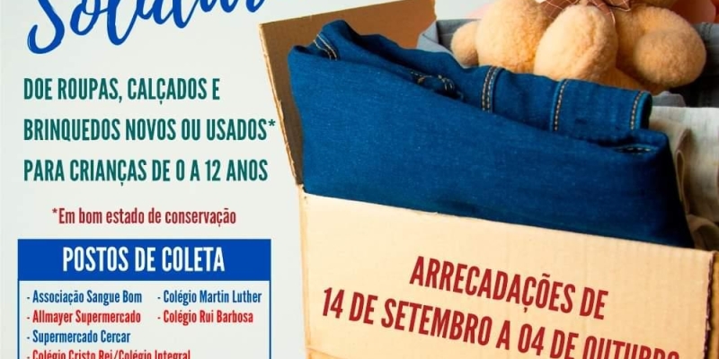 Com o objetivo de proporcionar um Dia das Crianças mais especial para crianças carentes do município. O Clube do Leãozinho promove uma campanha para arrecadação de roupas e brinquedos.