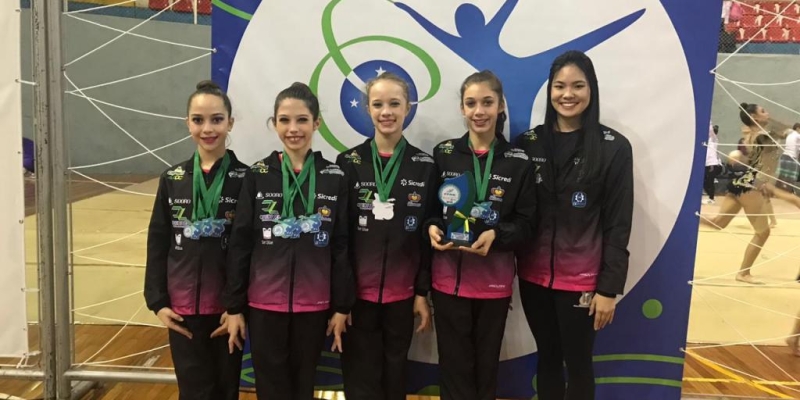 A aluna do Colégio Luterano Rui Barbosa, Júlia Gomes, sagrou-se campeã na disputa final por aparelho, da categoria Infantil III Corda.